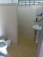 Ванная комната это примитивный душ с водогреем без шторок и дверей. Вода заливает всю площадь включая унитаз. Есть на троих три тюбика с шампунем и гелем для душа. Руки мыть нечем. Вентиляция принудительная отсутствует. Просто дырки на улицу сделаны. В описании бунгало значится плоский телевизор по факту старый и не плоский. Каналы русские есть но смотреть невозможно так как качество сигнала плохое. Правда мы его и не смотрим.