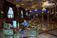 Быстрота расселения зависела только от скорости туристов в заполнении регистрационных карточек. Взамен на карточку туристы тут же получали ключи от номеров. Жили в основном здании, Аннекс и клубное здание пока были закрыты. Все номера в основном здании с боковым видом на море. Здание построено и обставлено в дворцовом стиле, поэтому не покидало ощущение, что находишься в Екатерининском дворце С-Петербурга. На креслах, с подлокотниками в виде позолоченных львиных голов, можно было отдыхать, там не было веревочки с надписью "руками не трогать". Огромное количество зеркал в интерьере создает впечатление бесконечности пространства. Вещи в номер доставили практически сразу, приняв душ с дороги и переодевшись, мы отправились знакомиться с отелем. Поскольку внучка занимается спортом, то особый интерес был проявлен к тренажерному залу. Приветливый персонал спа центра тут же нам устроил маленькую экскурсию по своим сокровищницам (тренажерный зал, бассейн, джакузи, баня, сауна, парная, многочисленные массажные кабинеты).