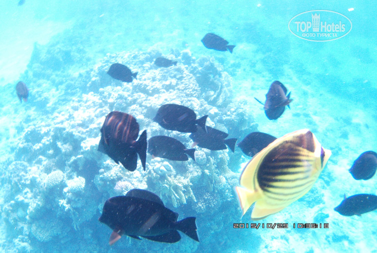 Очень маленький пляж на 4 отеля. Лежаки люди занимали с 5-6 часов утра. Есть практика, даешь 1-2$ и Бич-бой тебе займет или продаст место. Если придти в часов 8-9 лежаков нет. Вход в море песок дальше камни. Есть еще вход в море с косы, но там надо быть аккуратно, так как спуск по камням. Подводный мир потрясающий, если смотреть на море то влево от вас есть живой коралл, очень красиво. Много рыбок, скаты и мурены, просто потрясающе. Лучше на море приходить с утра так как после 12:00, море становиться мутное, начинают работать катера. Бар на пляже есть работает с 10:00, только алкоголь и безалкогольные напитки.