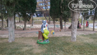 Очень понравилась площадка для детей. Много фигурок мультяшных и сказочных героев, верёвочный городок. Самым младшим детишкам скучно не будет.