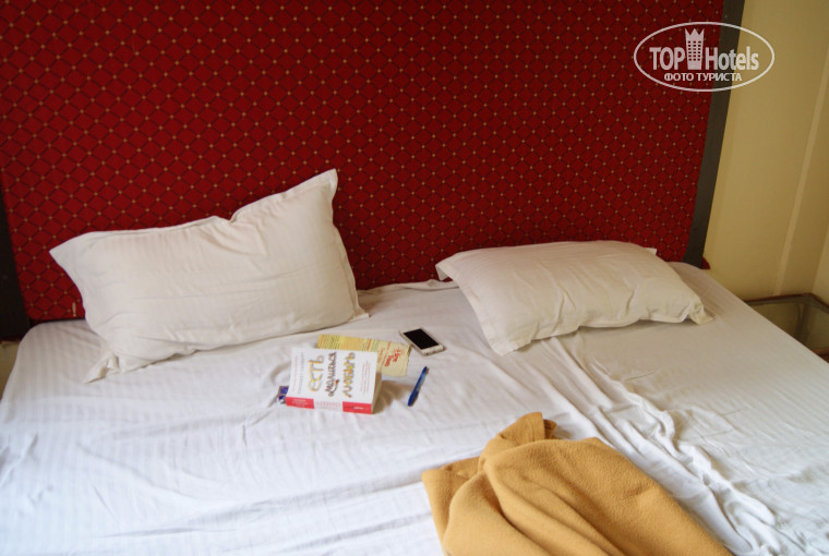 До отеля ехали час примерно, высадили нас на дороге и шли мы еще с чемоданчиками минут 5. Отель находится рядом с недостроенным отелем, где собирается по вечерам много собачек, так что жутковато. Заселение в 13:00, сказали, что покормят завтраком. Потом как оказалось, если ты не с ранним заселением, за что нужно платить 10$, то плати и за завтрак. На тот момент от завтрака остался чай и булка с маслом, за это все хотели 150 рупий.