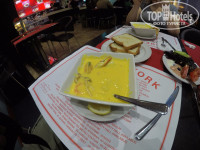 Это не первая наша тройка и питание вполне. Всё съедобное .Каждый день фрукты: дыня,арбуз,манго,апельсин.Всё это резаное кубиками.Здорово залить их йогуртом и получит отличный завтрак. Йогурта кстати 2 вида каждый день: обычный и фруктовый . Пару раз давали дольками фрукты .Первые дни вообще было супер .потом чуть по хуже. Исчезли сосиски и добавили ещё один вид оладушек .Хлопья 2 -х видов ,фасоль ,горох - с томатом.Лепёшки, варенье,3 вида сладостей. Помидоры ,огурцы,вкусный сыр,ни чего так колбаса,Тушёные овощи как правила 2 вида.