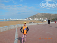 Начну по-порядку: заселение прошло на ура. Заезд был большой, но прощелкали нас как орешки. Нам повезло номер с видом на океан ( без доплат не просили) шикарнейший вид № 2004. На троих номер с 4-мя кроватями. Убирались каждый день, полотенца меняли каждый день, в номере мини холодильник, плазма, С собой брали чайничек вечерком чаек пили).Расположение отеля самое удачное почти в центре всей движухи, но в то же время в номере тишина и покой. Про океан рассказывать это время терять. Пляж широкий чистый, шезлонги бесплатно, полотенца пляжные под залог-100 дирхам.Примерно нужно умножить на 7 и будет в рублях. Менять евро, доллары можно как в отеле на ресепшене. так и в банке около отеля, да и везде- курс один и тот же. В любом банкомате с картой виза мастер то же можно снять дирхамы но с комиссией, но это не болезненно, в магазинах и ресторанах расплачивались картой. удобно. Что касается магазинов и рынков: в юниприксе дешевле одежда в т.ч. и их нац. костюмы, в маржан ехать не стоит ( тот же наш ашан), на рынке (сук альляхат) торговаться и торговаться обувь кожаная классные модельки, сувениры то же дешевле чем юниприксе но нужно прежде все пройти не полениться, фрукты обязательно покупать дыни это нечто вкуснейшие, лепешки, сладости не брали т.к. не любители. Спиртное дешевле в магазине маленьком на улице где юниприкс можно спросить где находится магазин детской одежды ORCHESTRAвот около этого магазина, можно смело тариться их спиртным и пивом.Вино у них все сухое более или менее по вкусу. Про время препровождению: в городе птичий парк - бесплатно, там же трамвайчик по городу прокатиться 18/12 дирхам взросл/детский, экскурсии смело берите у [удалено модератором]. Мы брали в Легзиру ездили с [удалено модератором], понравилось и много узнали о королевстве. Очень хотелось в Маракеш но из 8 дней 2 потратить на экскурсию - жалко. Если хотите приобрести дорогие вещи советую обратиться к [удалено модератором]. В отели группа аниматоров работает постоянно только это все не навязчиво не лезут не приглашаю но интересно и красиво) В течении дня фитнес,игры, йога и т.д. и т.п. Оранжевое такси 20 дирхам в любую точку города.Люди дружелюбные, улыбчивые гулять не опасно. Если будет возможность обязательно вернем туда же и в тот же отель. ПИТАНИЕ, В отеле питание хорошее на завтрак-яичница, пончики, блинчики, творог, джемы, пирожное , напитки кофе чай соки вода, зелень, овощи,суп, хлопья. Трудно остаться голодным)))На ужин- суп, два вида рыбы, курица, индейка, картофель, овощи , салаты напитки платные(в 2-3 раза дороже чем в юниприксе). На обед облюбовали ресторанчик LE NIL BLEU находится на набережной обалденный тажин и пицца и цены не очень высокие. Территория отеля ухоженная красивая зеленая любо дорого смотреть.
