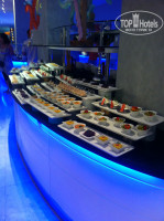 Всем привет! Были в отели на майские праздники того года. Прилетели уже вечером, до отеля ехать мин 50. Внешне очень крависый, белый с голубой подсветкой, все как я люблю)) Заселили сразу, номер дали на первом этаже, не далеко от ресепшена. Номер был отличный, с 3мя раздельными кроватями, для троих, конечно маловат, но все новое, чистое. Вид был на второй бассейн, на город и на вход в отель.. В отеле несколько корпусов, были в номерах у других корпусах, там уже номера не такие как у нас, поэтому здесь как повезет. Поэтому за размещение 5-. Много иностранцев, русских процентов 30 не больше. Анимация на английском, поэтому ее не посещали, сказать особо ничего не могу. Развлекали себя сами, так как набрали большую и веселую компанию. Дискотеки в Питание. Здесь 5+, выбор огромен, еда на любой вкус и цвет, все горячее, очень вкусное, мясо разных видов, различные гарниры, фрукты, овощи, сладости, мороженное, роллы и так далее всего не перечесть и не упомнить. Плюс в баре около бассейна всегда пицца, нагеццы, крылышки, картошка фри и много еще всего. Алкоголь в норме, любое количесво в одни руки, выбор тоже очень большой, так же различные коктейли. Здесь голодными точно никого не останетесь. Работники отеля все доброжелательные, улыбчивые, за помощью не за чем не обращались, поэтому не скажу как решаются проблемы разного рода. А вот уборка номеров хворает. Максимум меняются полотенца, выкидывается мусорка и подметается пол. Белье менялось 1 раз. Грязные ватные диски от макияжа с тумбочки никто не уберет. Чаевые не спасают, поэтому потом даже перестали уже оставлять. Инет только на ресепшене. Пляж. Ну для пятерки оставляет желать лучшего. Море буквально в 3х минутах ходьбы от отеля через не очень чистый пустырь. Мелкая галька. Так как были в начале мая, море было еще прохладным, народу было не много, все в основном тусили у бассейнов. Лежаки свободные были, но при полной заполняемости отеля думаю этих лежаков крайне мало. Бара на пляже нет. Сама территория отеля не очень большая для такого кол-ва отдыхающих при полной заполненности отеля. Экскурсии. Хамам брали в гида в отеле, вроде 35$, на пляже у чувака брали экскурсию по Эгейским островам, очень понравилась, виды красивые + кормят + бар на яхте. За все про все 55$. Ездили на поющие фонтаны на центральную площадь, а так же на Бар Стрит (улица баров) - весело было.