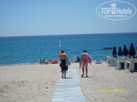 ПЛЯЖ. У отеля свой пляж, песчаный. До него можно добраться через эвкалиптовую рощу. Только при входе в воду камушки есть. Мы были в июне, море было холодноватое (для меня), я смогла полноценно поплескаться раза 2, не больше. На пляже есть просторный БАР, где приятно освежиться, кроме того, постоянно звучала громкая музыка на весь пляж. Медузу видела только один раз и то уже в ведре у спасателя.