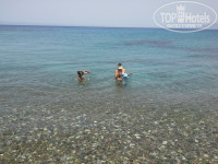 Сразу хочется отметить удачное расположение отеля. Конечно это в первую очередь не утомительная ежедневная дорога до моря и обратно. Не спеша с детьми 10 мин. Никаких проблем с доставкой ребенка до пляжа не возникало, съезды для колясок есть везде.По тихой улочке от корпуса, где практически нет авто, далее через пешеходный переход основной улицы и вот уже специальная рампа для колясок и ты у самой воды. По пути есть киоск "Виктор" с прохладительными напитками и кое чем покрепче. Питьевую воду покупать тоже можно в нем. Причем цены на неё за две недели хоть и незначительно, но подросли, видимо чем жарче - тем дороже. При отеле тоже небольшой магазин с адекватными ценами, но ассортимент по скромнее.