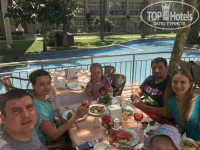 Отель чистый, с большей территорией,много деревьев, цветов, кустарников, много бассейнов: взрослых, детских, спортивный, с искусственными волнами, есть горки для детей и взрослых. Вода чистая чистая, каждый день бассейн пылесосили. Но честно, в бассейне я так и не искупался, море море.... Пляж песчаный, много лежаков и все под накрытием со столиками, два пирса, на которых тоже есть лежаки для загара, и два понтончика для захода в море, хотя я ими мало пользовался, но с ними легче если не взяли тапки для плаванья, что советую, хотя мало на ком видел и сам не брал. Заход мелко галечный, немного давит в ноги, но терпимо, либо на понтон. Вода в море чистая чистая, такого б с песком думаю не было, дно видно на любой глубине, кажется что мелко. Живности мало, брал маску, несколько стаек рыб видел, Египет в этом отношении рай, но за то, в Турции сервис и питание на высоте! Один раз был дождь днем, к вечеру уже все плавали, частенько были волны, но плавать можно было! На пляже под навесом детский бассейн с проточной морской водой, что было большим плюсом, т.к. дети тянули туда песок, а вода проточная, а значит чистая, плюс каждый вечер воду спускали и его чистили! Детям там был рай, песок, вода, особенно тем кто еще боялся купаться на кругу в море, а таких хватало. Есть на пляже и зона +18, но не был там и отдельные домики для отдыха с собственным обслуживанием за 50 дол. в день. Так же есть волейбольная площадка, с 9 до 10,30 играли дети с детского клуба, а потом взрослые до вечера. На берегу есть прокат водного мотоцикла, катера, банан и часто людей катали на парашютах.