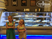 Питание тоже высшего уровня, нет конечно красной икры, но всего было много, что мяса: баранина, индейка, курятина, телятина; рыба на гриле: скумбрия часто, сибас, дорадо, форель и пару раз была красная рыба, были креветки и мидии 2 раза, овощных тоже хватало, гарниры: картофель вареный, фри и тушеный, гречка, плов и рис вареный, фрукты: яблоки, груши, апельсины, нектарины, персики, сливы, бананы, арбузы, дыни. Сладостей было много, ну я не любитель, хотя сильно понравилась халва, дома точно ее не люблю, а здесь понравилась. Отдельно стоит стойка с диетическими блюдами, отдельно уголок для детей со стульчиками, столиками и специальной детской кухней. Напитки: звездой программы был конечно утренний апельсиновый фреш в любом количестве, делали на глазах, соки хорошие, не порошковые, а наливали при мне из картонный пакетов, много разнообразного кофе, классный черный чай и др. виды чая, популярностью пользовался Айран в упаковках. Алкоголь: пиво хорошее, виски Ballantines,Highland Queen и местного производства, бренди Napolion и местные, Martini и Bayleis, Maliby, водка Absolut, ром Bacardi и текила, но названия не помню.Вино их местного бутылочно, но скажу очень хорошее, белое, красное и розовое. Вообщем алкоголь качественный, и пьянели и плохо не было.Вода в больших и малых бутылках в большем количестве на каждом углу в холодильниках. Всегда в наличии мороженое шариками видов 7, и два раза холодильники стояли с мороженом в упаковка на палочке.