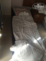 По прибытию (это было 3 утра), нас поселили в старый корпус, на второй этаж, как раз над ресепшен (комната 115), окнами к морю-бассейну. Номер, просторный, поставили две раскладушки (хотя я просила две детские кроватки), на полу кафель, матрасы удобные только на кроватях, на раскладушках жесть. В итоге я постелила на них одеяла (сложеннын в несколько раз), только тогда можно было на них нормально лежать , не чувствуя спиной каждый выступ. Подушки, тоже все скомканые, старые. Мебель нормальная впринципе. Телевизор старый. Ванная просторная. Есть с чем сравнить, тк. потом мы переселились в новый корпус, где ванная гораздо меньше, но об этом позднее. В номере был сейф (платный), холодильник (бесплатно), фен, кондиционер (работал хорошо, не пахло), чайник, чашки. С утра я пошла просить другой номер, т.к. предполагала что под окнами будет анимация и мы не сможем спать.