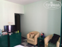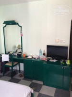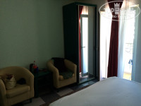 Номер маленький. Окна выходили на задний дворик и горы. Это лучше, чем на проезжую часть, где постоянно оживленно и достаточно шумно. Соседи жаловались, что ночами плохо спят. В нашем номере была тишина. Мебель в номере старовата. Постельное белье и полотенца чистые, меняли их регулярно. Претензий к этому не было. Убирали – как могли: иногда хорошо, иногда плохо. Ковры на полу я бы вообще убрала. Не красят они номер. Шторы страшноватенькие. Еще бы я на балконе столик поменяла. Он с деревянной столешницей, дерево уже все облупилось и потрескалось. В номере есть сейф, холодильник, два стакана, кондиционер, ЖК телевизор (показывает 1 канал), одноразовые тапочки. Ванная комната с душевой кабиной. Есть мыло, шампунь, гель для душа, ватные палочки, набор с нитками, иголками. Проблем с водой не было. Wi-Fi в номере нет, только на первом этаже.