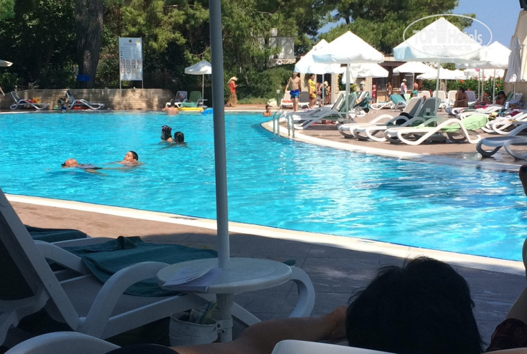 Сегодня прилетели из этого отеля. Отдыхали три семейной пары. У каждой семьи по 2 двое детей. До 2 лет и 8 лет.Пишу отзыв сразу, потому что отель не порадовал своим сервисом и гостеприимством. Прилетели мы вечером. В отель подъехали в 23.30 и сразу заселили нас. Номер был Гарден, номер 5000. Единственный плюс этого бунгало. Он находится в тупике и тенёчке. На против соседей нет, тихо, ни кто не тревожит. Дверь всегда открыта, хоть раздетой ходи. Ночью на беседки устраивали свои посиделки. Ночью даже кондиционер не включали. Минус номера если из еды что-нибудь появится в комнате, то муравьи появляются на столе. Поэтому любой мусор от еды сразу выкидывала в урн на улице. При заселение пастельное белью застелили белоснежное, шампунь, кондиционер, гель все было в ванной. Полотенце на 4 тоже было. Полы ужасно грязные были и чуть сырость была. Пришлось ночью, в день заезда вымыть самой полы полотенцем для ног, протереть пыль, открыть дверь, окна, чтоб выветрить сырость. До центрального здания не далеко, наоборот даже нравилось прогуливаться. Здание центральное отеля простенькое, ремонт и мебель очень бюджетное. Ресторан в центральном здании напоминают столовую))). В Турции отдыхаем не в первый раз, но такого я ещё ни где не видела. Во первых перед обедом и ужином стоят толпы туристов у входа. Когда открывается дверь, бегут занимать столы))). Если вы придёте на 20 минут позже, придётся сидеть на улице в духоте, а вечером вообще рискуете без места остаться))). Можно приходить на 1 час или 1.30 позже, тогда место ещё можно будет найти. Только стол в крошках, без сервировки. Салаты, сладости, фрукты, рис с гарниром, макароны все доступно. Если захотите что-нибудь вкусненькое, мясное. Шашлычки, кебаб, кальмары, то придётся минут 30 простоять в очереди и на тарелку раскладывают попорционно. По 3-4 кусочка))). Принципиально не стояла в очереди. Просто такого, ни разу не видела в других отелях. Мужчины официанты приносили напитки за обедом и ужином, а девушки официантки игнорировали или ворчали. По поводу территории. Большая территория. Где бунгало стоят красивая зелёная зона. Каждую ночь их поливают и убирают территорию. Вдоль моря засохшие банановые деревья и трава. 2 больших бассейнов с морской водой. По поводу лежаков. Здесь действует принцип поговорки: Кто рано встаёт, тому лежак в бассейне и на море перепадёт". Народ с 6.30 бежит занимать с полотенцами места. И иначе ни как. Неужели нельзя было поставить лежаков на шт. 20 больше?! Детский клуб есть. Опять горка деревянная опасная, вся крехтит, лесенка маленькая в детский бассейн открученная на болтах и качели опасные. Ну деваться не куда, ребёнок просился туда. Только под присмотром родителей можно кататься там. Есть большие горки. Не пробовали кататься. В море вход не удобный, берите специальную обувь или купите в отели. Море очень чистое, мусора не видела, тёплое. Видно в Турции кризис. На пляже просто так не полежишь. Предлагают сфотографироваться, покататься на катере, сходить в спа, съездить в магазин. И это каждый день. Напрягать начали уже. Очень понравились детские аниматоры, как работают с детьми и диско клуб. Ребёнок 1,8 лет с удовольствием ходил танцевать и взрослый сын 9 лет играл с ними и танцевал. Очень понравилось ему. Взрослая анимация нормальная. Хорошо проводили игры, зарядку. Девочки общительные. Наверное подустали. 