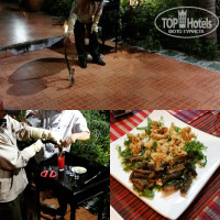 Питались мы в кафе за пределами отеля. В ресторане при отеле очень дорого! Начитавшись перед полетом хороших отзывов про ресторан Чайхана312, в первый же день отправились туда на ужин и ни на секунду не пожалели. Потрясающая кухня,уютная атмосфера и великолепные люди. Ресторан держит семейная пара из киргизии (Юля и Асхат), молодые ребята с ними и поболтать можно и в кухне (вьетнамской,русской,киргизской) помогут разобраться. От них кстати мы получили гораздо больше полезной информации относительно отдыха,чем от отельного гида (рекомендация Пегасу более тщательно подбирать персонал). Там же Юля меняла нам деньги. Во всех отелях есть свой обменник на ресепшн,но курс самый лучший у Dessole (там за 100 долларов вам дадут 2 240 000 вьетнамских донгов), у Юли меняли по 2 220 000 (нас вполне устраивадо, для сравнения в нашем отеле курс 2 150 000). Для простоты расчетов расскажу как быстро переводить суммы на наши деньги: убираете последние три нуля и оставшееся умножаете на 3. Например стакан свежевыжатого сока стоит 30 000 донгов, убираем три нуля,остается 30,и умножаем на 3. Путем нехитрых математических исчислений получается что стакан сока стоит 90 рублей. В среднем за обед мы отдавали до 250 000 донгов (на двоих), на ужин до 350 000 донгов. Это суммы с алкоголем. Прошлись по другим кафе (про которые в отзывах писали). Узбечка - вы меня простите, конечно, но непонимаю восторженных отзывов об этом заведении. Во-первых место расположения - находиться внутри здания (без окон,без дверей). Мне так показалось,что еду там не готовят, у них всё приготовлено заранее и для тебя это только разогрели. Вобщем туда мы больше ни ногой. Еще ходили в Восток-Запад,вот тут понравилось. Хорошая кухня,приятная атмосфера, обслуживание. Владелец заведения (русский) много лет живет во Вьетнаме, хорошо разбирается в местной кухне. Готовят очень хорошо. Единственный минус-это небольшие порции. Например у меня мужу не хватило одного блюда,пришлось дозаказать и за счет этого соответственно увеличивается общий счет. Но в это место мы всё же сходили не один раз,поэтому так или иначе я рекомендую его к посещению. Но всё же большей популярностью ползуется Чайхана312,как среди нас,так и среди туристов Dessole (где кстати живут по системе всё включено).