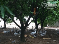 Территория. На тер-ии находится три бассейна. Один детский, но он представляет из себя лужицу, поэтому за время моего прибывания, я не видела ни одного человека в нем. И два бассейна побольше, один с наиболее теплой водой, второй похолоднее. Две горки. На улице стоят столики, пообедать и поужинать можно там. Также на территории есть рыбки, курицы и гуси, это все находится в отдаленной зоне.