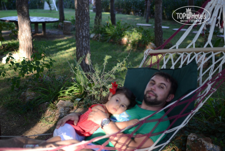 Территория очень ухоженная, очень много гамаков в в тени деревьев развешано, всегда есть место для полежать)