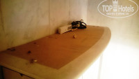 Все за себя говорят фотографии. Очень грязные шторы, протекший потолок, очень пыльная люстра и толстый слой пыли на стенах. Липкая тумбочка, видимо когда-то на неё пролили сладкий напиток. За 8 дней ни разу нормально не убрались.