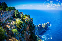 До моря пару минут, сразу через дорогу пляж Клеопатра - лучший пляж Аланьи, ради которого мы и полетели в Турцию! Но в самом отеле тихо и спокойно, отель стоит не у самой дороги, а вторым зданием от нее. Единственное, что нарушало спокойствие - это утренняя молитва! Мечеть находится в центре города, как и отель! Но на второй день мы ее уже не замечали и спокойно спали дальше даже с открытым балконом)) просто по-началу было непривычно)) Гораздо лучше, когда отель находится в центре - всегда есть куда сходить, Первана нам даже карты рисовала, как куда пройти: магазины, рынок, клубы, кафешки, рестораны - всё в шаговой доступности! Если куда надо было подальше - садились на автобус (остановка тоже рядом)! Главная древняя достопримечательность Аланьи - это крепость (Коле) - даже пешком можно прогуляться на гору, она совсем рядом - шикарные виды города открылись нам с высоты птичьего полёта!!!