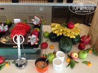 Первые 5 ночей бронировали через Букинг, решили продлить на месте если понравится. Остались :). Получилось на 15 usd дороже, т.к. даты заселения были ближе. Так что берите сразу на весь срок. Отель принадлежит международной сети Melia (Испания), поэтому, приехав туда вы получите хорошее размещение, сервис и питание на высочайшем уровне. Персонал не весь говорит на английском, но это и не нужно охранникам или уборщикам, но они всегда быстро подзовут того, кто знает язык, с этим нет проблем. Вьетнамцы крайне радушны. Чистота везде и около отеля, на территории, у бассейна, на пляже и в номерах.Пляж белоснежный, насыпной. Песок привезён с Бай Сао и не нагревается от жары, Ежедневная уборка, смена белоснежных полотенец. Если хотите сменить постельное или халаты - просто кидайте на пол. Да, иногда поверхностно убирали пол в номере, но по их понятиям он чистый и нужно понимать, что вы во Вьетнаме и отпустить этот момент. Или же нажать кнопку для повторной уборки. В номере есть всё, берите только бритвенные принадлежности, лёд принесут по просьбе, в баре ежедневно пакетированные чай и кофе, вода 0.5 на человека +0.33 для чистки зубов в ванной комнате (но мы не заметили, что вода в кране чем-то плоха). 2 русскоязычных канала. Изумительно мыться и смотреть на море и горизонт прямо из душевой, благодаря стеклянным стенкам. В отеле всё очень уютно и удобно. Мы брали завтраки и мопед (180 k в сутки), спросило о нём на стойке регистрации. Оплатили сразу все дни, но если будете брать - оплатите несколько дней, а продлите позже у арендатора и договоритесь о скидке, будет около 160 k. Отель в стороне от города, кафе и ресторанов, и так опостылевшей СУЕТЫ. На мопеде до въезда в город 10 мин, при скорости 40 км/ч, там можно и ужинать. Мы покупали фрукты (цены везде одинаковые, местные стеснительный народ, гостеприимный, не научились ещё жульничать) на рынке на обед, привозили с собой, а в ресторане по просьбе нам их нарезали и сервировали. Шеф-повар ресторана итальянец, гоняет всех, с термометром проверяется температурный режим блюд, как горячих, так и холодных. Питание разнообразное, свежевыжатые соки в ассортименте,меняются день ото дня, азиатская кухни и европейская, омлеты и сосиски, супы, горячие блюда и упор на мясо, рыбы не было - её хватает за отелем. Всегда был хамон, сырокопчёные колбасы, буженина, морепродукты, всяческие закуски и салатики, разложенные порционно, сыры от Гауды, Камамбера, Чеддера до Пармиджано Риджано! Выкладка небольшими порциями, постоянно пополняется. В ресторане прохладно, мы предпочитали сидеть снаружи. А как всё вкусно! Особенно выпечка, которую я, кстати, не очень люблю, но тут! Пончики, круассаны с вытекающим шоколадом, маффины и фруктовые пироги. Обязательно пробуйте пирожные и тортики, например шоколадный был с чёрным перцем - сочетание вкусов сводит с ума! А с белым шоколадом и вкусом сырного суфле..ммм..не могу писать - боюсь закапать клавиатуру))). На завтраке вам предложат кофе от вьетнамского со сгущёнкой и льдом, до чёрного зернового и капучино. Полотенца на бассейне. Обязательно попробуйте гамбургеры у бассейна! Это гастрооргазм! Оплата будет вычтена из депозита, который с вас возьмут при въезде из расчёта примерно 50 usd за номер в сутки. На чекауте всё вернут, если не испорчен номер и на месте халаты и полотенца)) Как и было обещано трансфер из и в аэропор
