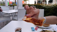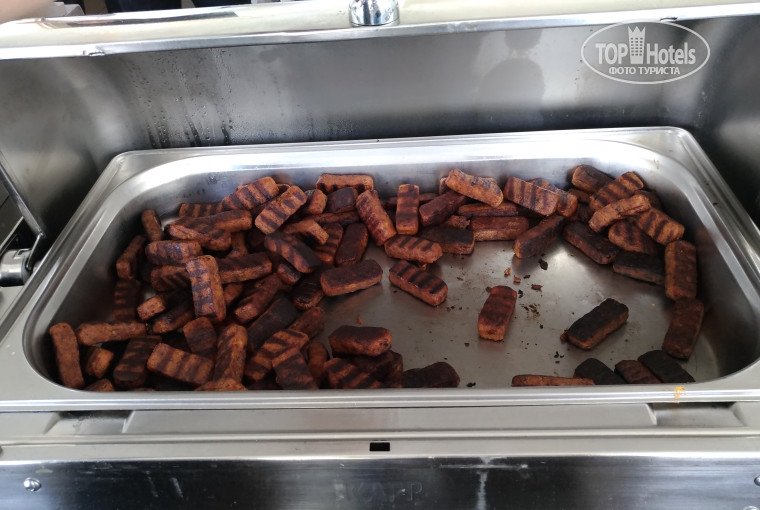 Но! Все работает в супер экономном режиме. Питание оставляет желать лучшего. Овощи- помидоры,огурцы. Из мяса - курица(кожа и кости из супового набора) и вареная , для диетического стола, из рыбного - кусочки несъедобной , ужасно костлявой рыбы. Из десертов, тоже, крайне маленький выбор. Причем все не очень вкусно приготовлено. Неплохая выпечка на завтрак. Заявленое мороженое и молочные коктейли отсутствуют. Алкоголь весь местного производства, хотя ultra all inclusive предполагает так же и напитки импортного производства, их нет.