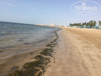 Напротив отеля насыпали длиннющий искусственный остров,который сейчас активно застраивается,в связи с чем образовалась своеобразная бухта со стоячей водой,которая постоянно цветёт! Водоросли не дают возможности нормально даже прогуливаться по щиколотку в воде,плюс неприятное илистое дно,все это уже достаточно давно и постоянно прогрессирует,эту тину уже никто не убирает-просто нет смысла!