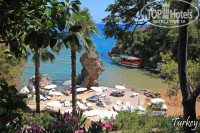 Был в Турции в хороших отелях раз 7 наверное. Этот отель понравился очень. Не похож ни на один из тех "5ти звездных городов посреди степи с все включено"где уже бывал. Имеет свою "изюминку", свой "шарм". Похожих я не видел.Расположение отеля просто великолепное для меня-на скалистом мысе с отличным видом. Прекрасный песчанный пляж с чистейшей водой и всегда свободными лежаками. Очень красивая маленькая бухточка с другой стороны с таким же отличным песчанным входом в воду. А у скал хорошо поплавать с маской. До дайв-центра со стороны моря. Глыба "Джеймс Бонд"-ну прямо Тай (для тех кто бывал). Территория утопает в зелени. Отель построен лет 25 назад, поэтому все в цветах и пальмах. Старый-не значит разваливающийся. Хоть отель и расположен на горке -абсолютно не напрягало возвращение в самый пик жары с пляжа. Думаю потому, что все находится в тени зелени. С бара у входа на пляж чудеснейший вид на всю бухту. Волны накатывают на мелкое песчанное побережье в несколько эшелонов. Ну прям -Варадеро :-))