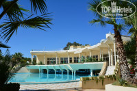 Малое количество гостей, скорее плюс для нас,отдыхающих - везде тихо, спокойно, малолюдно..Масса пустых лежаков везде - на пляже, у бассейна, у горок. Часто купались и катались c горок в одиночестве. Море чистейшее, заход отличный, мелкие рыбешки, водорослей не было.
