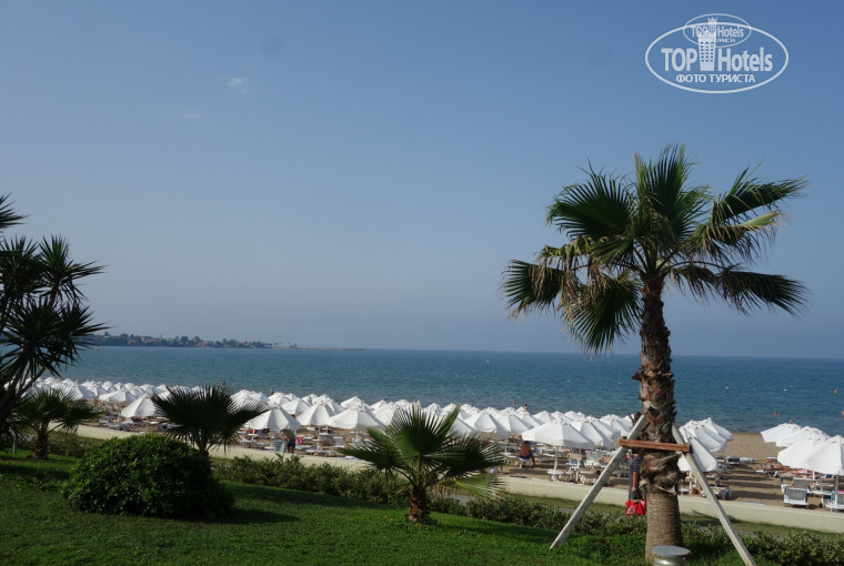 Отель замечательный!!! Номера большие, уборка,смена полотенец ежедневно, все сотрудники очень доброжелательны!!! Есть на ресепшен менеджер русскоговорящий, решает все проблемы, спасибо, Олеся!!! пляж отличный, достаточное количество лежаков с зонтами, пляж песчаный, заход в море пологий, ровный, неглубоко, что предпочтительно для детей, вода очень чистая, не мутная. Полотенца для пляжа выдают бесплатно (под залог) , менять можно ежедневно. Еда превосходная, очень разнообразная, качественная и вкусная, всего в достатке. Фрукты каждый день, яблок и апельсин постоянно в течении дня, вечером - дыня и арбуз. через день -клубника!!! помимо основного питания, в кафе на пляже и около бассейнов пекут лепешки с сыром и другими начинками на камне (Очень вкусно, рекомендую обязательно попробовать!!!), также разнообразные пиццы, есть всякие закуски в разное время, в общем можно сказать что питание круглосуточное!!!. Кофе, напитки, вода - постоянно!!! Дочери -11 лет, тоже все очень понравилось!!! Каскад бассейнов, в одном есть горки, работают по часам, но этого времени было предостаточно!!! Работают много аниматоров сдетьми и взрослыми, маленьких детей слышала, что можно оставить с ними. Вечером концерты и танцы. Предлагается много экскурсий. При отеле есть хаммам, несколько ресторанов, в которых один раз можно побывать бесплатно (определенное меню). Большая территория, очень зеленая и ухоженная, . Думаю, в следующем году приехать еще раз. Всем сотрудникам огромное спасибо!!!