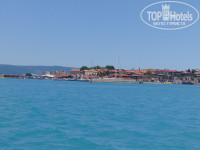 3. Море. Чтобы попасть на море,надо выйти из отеля на улицу и идти вдоль отеля за забором, или выйти через калитку,со стороны ресторана и тоже идти вдоль забора отеля минут 5-7, пляжей несколько,бары платные,лежаки соответственно тоже,за один предмет 6 левов, есть вип лежаки,типа беседочек белых по 30 левов 2 места или в большой беседке 15 за одно место. Пляжи хорошие все,везде песочек, где то помельче,где то поглубже. Вода вполне пригодна для купания,даже иногда теплее, чем в бассейне. Если бы еще облагородили территорию между отелем и морем,то было бы очень прекрасно.