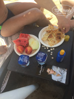 Возле пляжа можно также перекусить фруктами, лепешками, запечной картошкой с разными наполнителями . В холодильниках вода, айран. Так же возле бассейна есть детский бар с напитками, кондитерская(с16-18) чай, кофе, сладости и мороженое . Вообще мороженное можно есть прям с утра до вечера) Утром в основном ресторане возле детского стола холодильник, потом в детском клубе и в кондитерской .Голодными не останетесь)) если где-то закрывается кафе, то обязательно в другом месте начинает работать другое. Вечером , перед шоу, попкорн, потом сладкая вата. Каждый вечер - день определенного коктейля .23:30 поздний ужин)