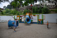 Территория шикарная, тут нечего сказать. Детские площадки, аквапарк, детские бассейны и бассейн с каменными горками и гейзерами, и зелень, зелень, зелень кругом.. Дети с удовольствием ходили на тренажеры под открытым небом.