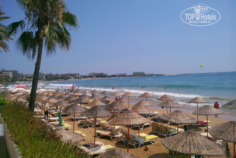 Пляж чистый, вода прозрачная. Лежаки занимали с утра, в первом ряду. Днем свободных не было. Единственный минус это курящие.... Нет отдельной зоны для курящих. Не приятно загорать, когда рядом дымят. Тоже самое и в лобби баре и в ресторане на балконе.