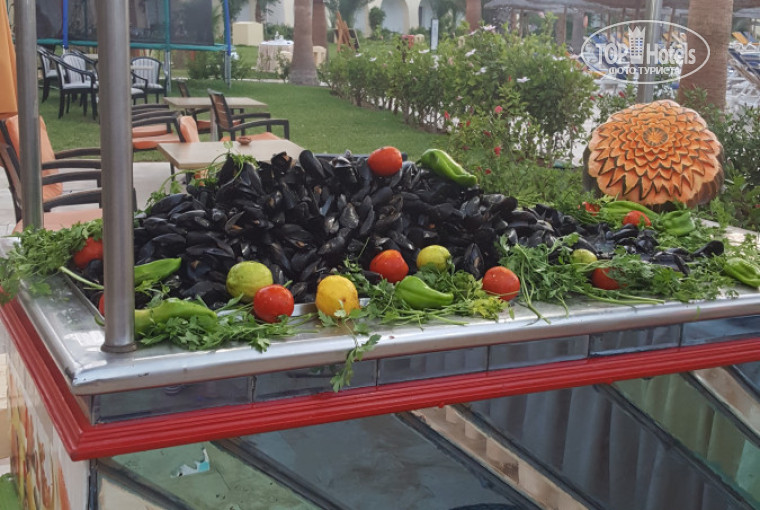 Отдыхала с 23.07 по 02.08 в этом отеле.Место для отдыха было выбрано случайно,нужно было убежать от дождей в лето)Про перелет писать нечего...мне повезло,улетела и прилетела по расписанию.Джерба встретила жарой +42!До отеля ехать минут 25.Приехали в 18.30 в 18.40 была уже в номере.Я жила на этаже где ресепшен,номер 204.Большой,уютный и чистый номер.Всё работало исправно. Холодильник не морозит сильно конечно,но воду охлаждает. Кондей отлично работает.Уборка в номере каждый день,полотенца меняют без проблем.У меня притензии не вызывало.Питание достойное.Каждый может найти для себя вкусненькое.Есть возможность записаться на ужин в ресторан(цена от выбранного блюда)Я брала креветки,мне понравилось.В обычном ресторане каждый день есть рыба,мясо(курица,индейка,говядина)субпродукты.Очень вкусный кус-кус.Родные макароны есть всегда,к ним соус на выбор.Овощи,фрукты.Сладости и мороженое .Очень вкусный хлеб)Есть возможность перекуса с 12 до 17,детям нравится)бегают за картошкой фри и пиццой. Основной бар достойный.Большой выбор коктейлей и напитков.Очнь вкусный кофе.Можно взять апельсиновый сок свежевыжатый(4 динара).Есть возможность заказать кальян и оооочень вкусные кактейли(платно).Территория не большая,но очень ухоженная.Зелени много,тенёк найти можно.Для малышей мини зоопарк,все чистенько и ухожено.Бассейн большой,лежаки занимать не надо.У бассейна всегда работает команда аниматоров,все весёлые симпатичные ребята.Скучать не дадут.Я лентяйка и смотрю со стороны)Вечером в амфитеатре шоу.Стараются Очень,выкладываются по полной.Танцуют супер.Очень красиво.Дидо,Анис,Джо и всем ребятам большое СПАСИБО!!!(не помню всех по именам к сожалению)Море...это чудо!Разное в любое время суток.Теплое,бирюзовое. Песок белый,пляж чистый.Идти пешком минут 5.С 9 утра возит машинка.Охраны на пляже достаточно ,и смотрят за плавающими .На территории отеля тоже много охраны,чужих не пускают.А главное!все улыбаются вам.Везде есть какие то нюансы,идеально не бывает.Главное позитивный настрой и желание...А то наши отличаться как всегда и из этого ищут минусы(то пристанут к барменам,чтобы им налили в 1,5литровую бутылку пиво с собой на пляж...они им вежливо откажут.Или возмущаються что им виски мало наливают да еще и в пластиковые стаканы)Улыбайтесь и все будет хорошо! Это Африка-Они очень ценят вашу улыбку.Всем хорошего отдыха.Пожалуй вернусь туда еще раз.