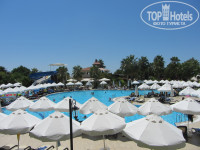 Питание очень хорошее, разнообразное: мясо разное и блюда из него разные. Много овощей (в т.ч. свежих), рис, макаронные изделия, свежий картофель (тушеный, запеченный, фри - все со шкуркой - и фри традиционный),сыров много, соусов разных, зелень разная, сладостей полно, на завтрак при тебе готовили яичницу, омлет персонально с начинкой , какую сам выбираешь. Рыба гриль и тушеная. Всего попробовать не удалось. Каждый день - мороженое в баре у бассейна, в баре не море - вафли и всякие печенюшки, айран в коробочках. Напитки прохладительные разные. Вино не оценили, пиво хорошее. Фрукты: арбузы, дыни, персики, нектарины, яблоки, виноград, абрикосы, сливы - все сладкое. По поводу работы кондиционера претензий нет, а вот wi-fi - жесть!!! Отдельная тема - лифт. Если занят и едет на верхние этажи , чтобы спуститься на -1 -ый этаж, придется проехать сначала наверх... В общем, ходили, в основном, пешком.Потом обнаружили лифт , на котором можно было добраться на наш этаж, прямо у выхода из ресторана. Анимация хорошая. Днем в бассейне аква-аэробика и др., у моря игры. Вечерние программы разнообразные. Понравилось. Для ребенка тоже оч интересно - смотрели мультики, пекли печенье, искали клад и др. Вечером - мини-диско.