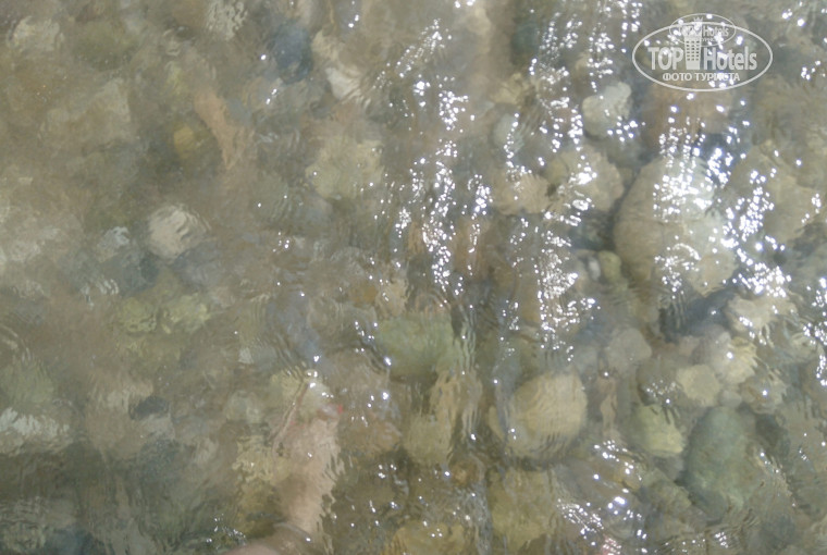 Вход в воду пологий, дно песчаное, для тех кто плохо плавает и маленьких деток подойдет. С одной стороны пляжа в воде встречаются камни, среди них плавают рыбки, дети одевали очки для плавания и рассматривали их. Вода была очень теплая, чистая, прозрачная: дно видно. Никакого мусора или водорослей. Можно было купаться часами, выходить не хотелось.