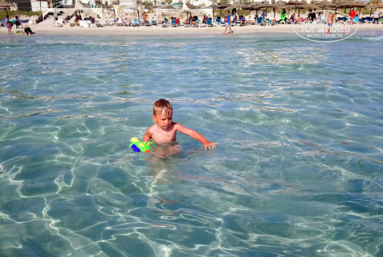 Вот оно самое главное достояние отеля – это изумительное, наикрасивейшее, теплейшее и чистейшее море!!! Из него просто не хотелось выходить, до сих пор скучаю по нему. Для детей оно просто идеальное, так как до буйков мелкое. Мы также вдоволь наплавались за буйками, приходили на пляж в 7 и до 10 в полном спокойствии рассекали по морю, потом появлялись развлекаловки и приходилось плавать с осторожностью, но все-равно все было ок! Пляж по утрам чистят, но он, конечно, все равно не идеально чистый, но приемлемо так скажем. Белый песочек и немного ракушек. Вход в воду очень приятный. На счет лежаков, с утра всегда можно найти свободный, да и в принципе, в любое время можно найти, просто это будет где-то на галерке, если хотите в первых рядах, то нужно занимать с раннего утра. Из персонала на пляже спасатель, он же находит свободные места, приносит матрасы и чистит их от песка. И периодически наведывается охранник, кстати, очень бдительный. Ребенок купался, я сидела на берегу, подошли 2 молодых парня тунисца из другого отеля и попросили их сфотографировать, не успела я взять их телефон, как вдруг появился охранник и очень строго говорил им, чтобы не приставали. Стоял рядом до тех пор, пока они не ушли.