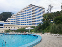 1. ЗАСЕЛЕНИЕ И НОМЕР. Перед отдыхом начиталась отзывов и ужаснулась, практически все отрицательные. С собой набрали одноразовую посуду, кучу лекарств и влажных салфеток. В ваучере у нас был указан корпус 8 "Океан-Сочи", я уже знала, что он находится на отшибе от основной территории комплекса, заселение с 12.00. Поэтому была морально готова ждать. Ребенок после бессонной ночи мирно посапывал на просторном мягком кожаном диванчике в холле. НО в 9 часов утра нам уже выдали карточки от магнитных замков и поселили в номер 1202, расположенный на 12-м этаже. Высоковато (мои первые мысли), а карточка с первого раза не сработала, пришлось на лифте ехать вниз, чтобы перемагнитить ее, но и со второго раза она не сработала, вызвали мастера, он моментально все сделал (кстати больше карточка ни разу не "дурила"). Зашли в номер. И я опять, начитавшись отзывов, я ждала жуткую грязь, засилье насекомых и т.п. Лично я была приятно удивлена - номер чистый, все в наличии и работало, батарейки в пультах телевизора и кондиционера были вставлены, в ванной все принадлежности в наличии, белье и полотенца чистые. За неделю я НИ РАЗУ не встретила в номере (ни днем, ни ночью) никаких насекомых - ни муравьев, ни тараканов, ни комаров (хотя средство тоже с собой прихватили, так нераспечатанное домой и привезли).Сразу скажу - окно мы не открывали, запускали кондиционер, только когда уходили, на плюс 20, такой приятный микроклимат сохранялся в номере надолго. За окном было жарко, днем до плюс 30. Вид из окна 12 этажа открывался очень красивый - море, бассейны и горы. Или нам очень повезло, или люди просто придираются, но номер у нас был хороший, просторный, мебель новая и целая, мне понравилось. К мелочам придираться не люблю и не буду, т.к. изначально настрой был другой - отдохнуть от суеты троих детей, постоянной готовки на кухне, вдоволь накупаться и позагорать самой и с ребенком. Номер убирали каждый день, но по-разному. Белье и полотенца заменили на 4-й день (я вот все хочу спросить тех, кто придирается, что не меняют белье каждый день - а вы дома тоже так делаете?), туалетную бумагу и мыло с шампунем добавляли по мере надобности, туалет мыли и дезинфицировали каждый день.