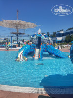 5. АКВАПАРК. Посещение собственного аквапарка входит в комплекс бесплатных услуг для проживающих в "АкваЛоо", для остальных это недешевое удовольствие - 1700 руб. на человека с утра и до вечера, 1500 руб. с обеда и до вечера и 1000 руб. на вечернее время. Были в аквапарке всего один раз, ради интереса. Т.к. мы были с маленьким ребенком, то естественно ни на какие большие горки не полезли, находились исключительно в зоне детских бассейнов с детскими горками и бассейне, имитирующем море (плавное увеличение глубины с 0,5 до 1,5 м и небольшие нагнетаемые волны). Зашли в крытую часть тоже ради интереса, там вода в бассейнах теплее. Дикого восторга лично у меня и ребенка аквапарк не вызвал. Единственное, что очень достойно там работает команда аниматоров (аква-аэробика для мамы и аквагрим для ребенка прошли удачно). Питанием мы там не пользовались, брали с собой все свое, поэтому про цены и качество еды ничего сказать не могу. Никаких инфекций после посещения аквапарка мы не подцепили (может, просто повезло), но ребенку я строго-настрого еще в самом начале отдыха запрещала нырять, глотать воду в море и бассейне, мы всегда и везде мыли руки и носили с собой влажные салфетки.