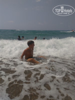 Пляж знаходиться дуже близько хвили 5 а то і менше .На пляжі досить багато лежаків ,на всіх вистачає .Пляж чистий ,море тепле.На пляжі працює рятувальник який постійно стежить за відпочиваючими. та їхніми діткам,А також на пляжі є снек бар ,який працює з 10.00 до 17.00 в якому можна взяти різні напитки а також можна перекусити.
