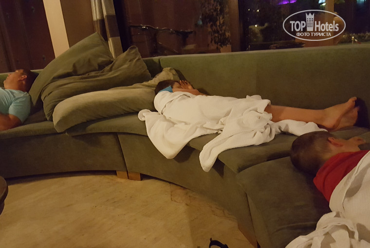 ЗАСЕЛЕНИЕ. Привезли нас в данный отель около 12 ночи и сразу сообщили, что номер нам не забронирован. Предложили отвезти в другой отель, мы отказались. В итоге нас заселили в 5 утра, дети (10 лет и 3 года) спали на диване в холле (фото прилагаю). Получилось, что из 9 оплаченных ночей, мы провели в этом отеле только 8. Затем мы поговорили с нашим отельным гидом Юлией по поводу компенсации за такое заселение. Нам предложили бесплатный сейф или ужин в мексиканском ресторане. Мы согласились на ресторан, но туда мы так и не попали (фото прилагаю). Подходили к гиду Юле, но она, узнав, что мы купили экскурсию не у нее, а на улице, откровенно начала хамить и вообще забыла о нашем существовании…Не покупайте у отельных гидов экскурсии!!! За территорией отеля значительно дешевле!!! А услуги предлагают те же самые: и трансфер, и обеды…