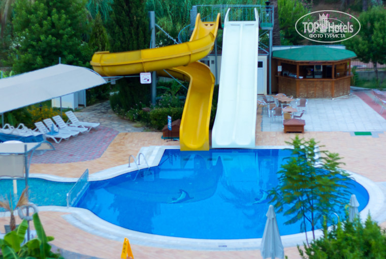 Отдыхали на протяжении 10 дней семейной парой, без детей. Отель очень уютный, чистый, много зелени и цветов на территории, ресторан состоит из двух залов, можно сидеть как внутри, так и на улице, кухня разнообразная, много овощей, несколько мясных блюд, разнообразие десертов, фрукты есть постоянно (арбузы, дыни, яблоки, сливы, цитрусовые). На ужин в ресторане на улице готовят гриль из мяса, птицы или рыбы. Обслуживание не плохое, но очереди за едой были постоянно, также вовремя не успевали убирать со столиков. Лучше приходить к концу обеда или ужина, тогда в ресторане посвободнее. Среди отдыхающих очень много немцев и турок, мало русских. Номер достался очень чистый, все работало, вид на маленький бассейн и горки, как оказалось довольно шумный, так как днем там катаются с горок, естественно, с криками и визгами, а по вечерам до 23.00 очень громкая анимация. Уборка ежедневная, белье чистое. До моря идти примерно 500 м, мимо торговых лавок, неудобства не доставляло. Рядом большое водохранилище, где можно погулять вечером. Пляж чистый, комфортный заход в море, шезлонгов хватает всем, но матрасы выдают только до 16.00, так что тем, кто приходит на пляж во второй раз после 16.00 (самое комфортное время для пляжа), матрас могут не выдать. В целом отдыхом остались довольны.