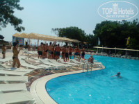 Отдыхали с семьей в отеле с 30 августа по 6 сентября. Начну с заселения. Приехали мы около 12. Заполнили анкету, получили браслеты и карточки на полотенца. В 12 часов начинает работать снэк бар у бассейна. Покушали совершенно неплохо. Даже в снэк баре вкусная и разнообразная еда. Ближе к 13.00 нас заселили в номер. Номер чистый, мебель конечно старовата. 2 кровати, диван, холодильник, кондиционер, телевизор, небольшое кресло. Кресло исчерчено шариковой ручкой. Но если люди свиньи-отель не виноват, не может же он менять мебель несколько раз в сезон. В холодильнике была питьевая вода и газировка. Телевизор, исправный кондиционер. Чистая постель и полотенца. Полотенца меняли каждый день.