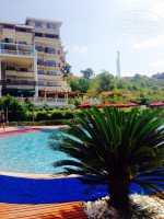 Вообще территория отеля хоть и не очень большая, но зеленая. Все растения ухоженные, цветущие! Видно, что к растениям здесь относятся с любовью. Есть детская площадка. Есть спортивная площадка с небольшим количеством уличных тренажеров ( в основном здании возле хамама имеется тренажерный зал). На территории отеля довольно много бассейнов и для взрослых и детских, есть бассейн с горками. Бассейны чистые, с теплой красивой водой.