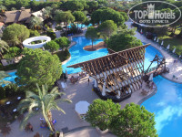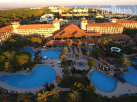 сразу хочу отметить, что отдыхали вдвоём, без детей и нам под полтинник... ещё хотелось бы предупредить, что отзыв актуален на определённое время года и не будет полезен своей информацией для гостей 2018 года... хотя кое-что может пригодиться... коротко об отеле : реально обалденный отель... бываю в Турции три раза в год. конец весны, середина лета и поздняя осень... в основном пятёрки... этот отель поразил своим размахом! огромная зелёная чистая и ухоженная территория! кругом бассейны, мостики, фонтаны, огромные газоны! просто всё здорово продумано! отель расположен к морю торцом, так что прямой вид на море в принципе отсутствует...с верхних этажей только боковой вид.... так что переплачивать за это удовольствие не стоит... номера, стандарт - хоть и не большой, но вполне уютный : ванная укомплектована по-полной! в номере - халаты, тапочки, мини-бар ежедневное пополнение лимонадами, минералкой, соками и просто водой... чайник с кружками и набором кофе, чай, сахар ... около пяти русских каналов...сейф... не в каждой пятёрке такой сервис... интернет в номере и по всему отелю просто БОМБА ! скорость бешеная, причем как в номере, так и на пляже, не говоря о холле.. холл отеля просто поражает своей роскошью. вечером живая музыка , девушка играла на рояле и скрипке.. алкоаголь в баре весь импортный, натуральный а соки в коробках... причем просто сядешь и уже бегут официанты и интересуются что будете пить... к пиву обязательно принесут две мисочки с солёными орешками и чипсами... по всей территории отеля холодильники с водой и айраном.. в барах на пляже и у бассейна холодильники с мороженым весь день...а у бассейна на столах постоянно фрукты... в основном ресторане отеля просто огромный выбор блюд... картофель во всех его вариантах - фри, по-деревенски, отварной, пюре... та же картина с макаронами... ресторан большой , всё расположено по разным местам... но на второй день уже привыкнете и поймёте где что находится... в предыдущих отзывах читал об очередях... самое смешное то, что мы сами их создаём... когда один клоун стоит и копается в подносе, выбирая в нём что-то интересное для себя, не надо послушно стоять и ждать его! просто обойдите и возьмите что вам нужно.... сам был очевидцем того, как один стоит и копается в картофеле по-деревенски, а остальные ждут пока он отойдёт... а перед ним пустота и остальной ассортимент.... если вас бесят животные в отеле - вам нечего делать в Турции!!! не встречал отеля , в котором бы не было кошек! в предыдущем отзыве девушка поставила отелю 1 за то, что по ресторану ходят кошки и гуси! это АНТИСАНИТАРИЯ!!! блин, какой бред! если человек не может отличить гусей от уток... в отеле в прудах плавают лебеди, гуляют уточки и детишки их кормят... это же здорово когда детки играют с животными... какая к чёрту антисанитария!!! официанты в ресторане летают как пчёлы... бы были в конце сезона и не заметили ухудшения сервиса и обслуживания кроме анимации... но это нам даже понравилось... не было школьников и студентов... не было грохота музыки в обед и дискотек в ночное время.... в общем-то как мы и предполагали... ведь хотелось тишины и спокойствия.... на момент пребывания в отеле были люди преклонного возраста и в основном европейцы и украинцы... у последних там был какой-то семинар и они составляли 40 % проживающих... россиян было очень мало... но ещё раз оговорюсь у каждого из вас будет св