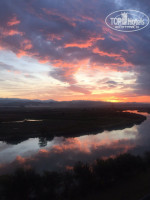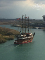 ВИД из номера прекрасный: река с пиратскими кораблями, горы, кусочек моря и по бокам красивые новые отели. А какие здесь рассветы! Жили на 5 этаже в номере 5151. Слышимость между номерами присутствует. Пару раз слышали соседей, но вообще нам повезло - они были тихие, ночами спали. Да и мы засыпали сразу, касаясь головой подушки.
