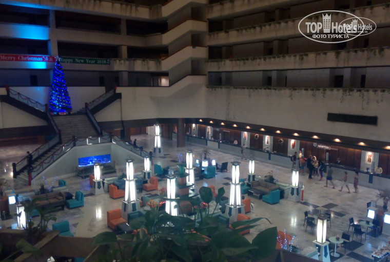 Так как мы долго не были в отпуске,то мы решили семьёй уехать отдохнуть спонтанно. Особо отель не выбирали,просто на Амбассадор были скидки на размещение. Размещали около часу,никто особо не торопился. Народ нервничал,но на ресепшене всем было все равно. И через час нам дали заветный ключ от номера 3033. Если когда-нибудь вам он достанется,то я вам не завидую. Номер оставляет желать лучшего,особенно вид на с балкона. Вид на соседнюю стройку и крышу отеля где сверху кидается весь мусор с верхних балконов. Наш балкон был шире верхних этажей,но это был его минус так как пепел,окурки и нижнее бельё других постояльцев был на нашей территории ((((((.Если ты пропустил уборку то ее может и не быть вовсе. Полотенца и воду порой забудут положить и приходится гоняться за горничними чтобы они все это дали. Кружку для кофе они нам вторую так и не поставили,хоть мы весь отпуск просили на ресепшене и у Ирины- менеджера при отеле.Завтраки обыкновенные и однообразные,порой не вкусные. Сама территория отеля очень красивая и большая. По вечерам народ сидит на газончиках, у кого-то играем музыка,кто-то играет с детьми... Кафешки при отеле неплохие. Часто заказывали пиццу в "Pasta Pasta". Очень понравился бассейн при нашем корпусе,он большой,с детской зоной и зонами гидромассажа. Самый большой бассейн был на реконструкции и по моему он до сих пор ремонтируется... Внутри отеля очень красиво. Работают 8 стеклянных лифтов и стекла у них не мылись лет 10,также как и окна в ресторане где проходили завтраки.В ресторане по вечерам играет живая музыка. Через дорогу от отеля есть ночной рынок,готовят там вкусненько,но ассортимент не большой. Море мутное,на пляже полно народу по причине того что основной бассейн не работал. Ехать в этот отель или нет решать вам. Но я его своим знакомым и близким точно не порекомендую...