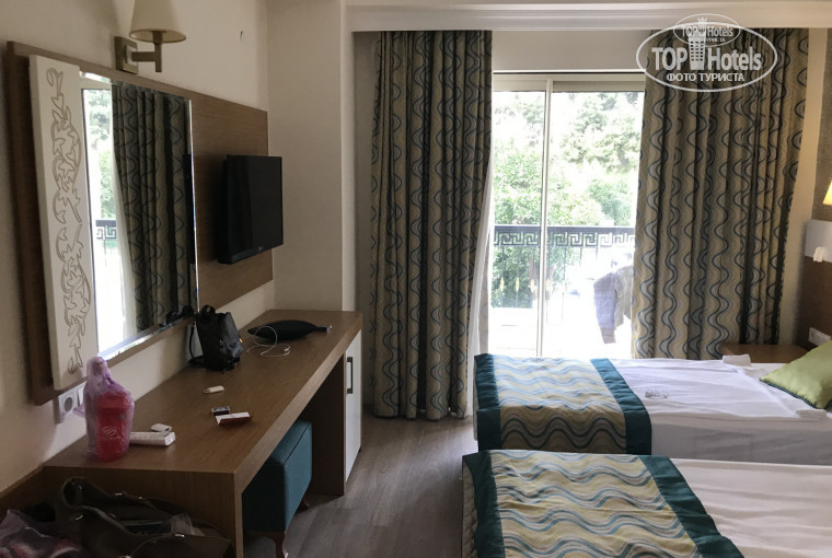 Путевку выбирали быстро и спонтанно,поэтому особо не выбирали ,у друзей был ограничен бюджет ,поэтому ,я отталкивалась от их материальных возможностей . И так начну ,приехали мы рано утром часов в 5/6 утра,заселили только к обеду,с этим вопросов не возникло(т.к везде так) , в ваучере была пометка с окнами на бассейн,но заселили нас с видом на дорогу (нас это не расстроило,т.к в номере практически не находились ) ,но мы были на первом этаже и все прохожие смотрели на нас ,как на обезьянок в клетке,когда мы находились на балконе. Номера маленькие развернутся было негде ,вдвоём очень тесно. Уборки не было ,от слова ВООБЩЕ,мы увидели первый и последний раз уборщицу при выселении)))в так же мы попали в такое время ,когда ночью уже холодно,и спать под простынками было прохладно очень . Мини бар это вода и минералка ) и бесплатную воду приносили через день . Шампуни и гели регулярно «забывали» поставить . И так бассейн и его территория : территории как таковой особо нет ,два корпуса два бассейна и веранды для приема пищи.бассейны без подогрева ,к сожалению вода была прохладной для купания. И горки если сломались ,то их просто закрывают ,но не чинят ((((по поводу питания ,оно скудное ,ну прям очень ,на завтрак кушать ,вообще нечего (хотя я не привередливая,бутерброда будет достаточно) но там проблемы даже с этим ,в обед и ужин километровые очереди к единственному нормальному блюду , мы к сожалению ходили кушать в кафе ,потому что на второй день ,нам надоели эти проблемы с питанием, с баром вообще проблемы ,он один на весь Отель ,ужасно недружелюбные бармены,которые дают не мытые стаканы со следами красной помады ,так же у нас с ними был конфликт!!!!!бармены почему то решили установить правила ,что одному человеку больше двух стаканов в руки давать нельзя!!!!!нас это повергло в бешенство!!!!под конец вечера они вообще отказывались наливать что либо!!!!я такого ужаса никогда не встречала ,в 12 ночи начинают всех разгонять спать ,было ощущение что мы в детском лагере и должны слушать вожатых,в общем это ужасно конечно !!!! Анимации в отеле нет ,и вообще не было ,я люблю,когда есть анимация ,может для кого то это плюс.Месторасположение прекрасное ,до моря идти минуты 4,но есть огромный минус у отеля нет своего пляжа и он арендует кусочек городского ,но на нем грязно ,нет шезлонгов !!!!!и трубы везде для спуска транспорта на воду,от которого очень сильно пахнет тем ,чем его заправляют !в общем с пляжем тоже дела не очень ,единственная радость ,то что Отель в центре все рядом ,можно погулять вечером ,отдых нам все это не испортило,компания была весёлой ,но Отель конечно ужасен,такое чувство ,что хозяева пустили все на самотёк и оставили Отель на произвол судьбы