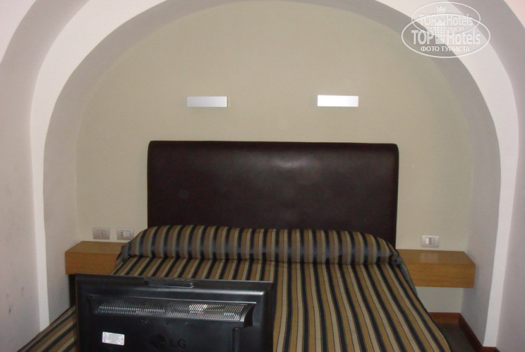 Номер был 2-х этажный, как для 3-х звезд, то просто отличный. Вход был со двора, в котором располагался фонтан и многочисленные статуи.
