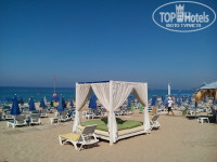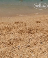 Море супер, крупный песок(мелкая галька) вход в море пологий, плит не обнаружила, зонтики и шезлонги платные. Комната так себе, телевизор обычный, балконная дверь заедала, светильники напольные не работали, убирали в комнате через день.