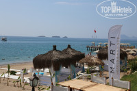 Море: кристально чистое. Заход оборудован( тропинки-мешки на дне) нам нравилась больше левая часть(если смотреть на море) ближе к платным павильонам - спокойнее и ближе к барам и перекусам. Хотя посередине бич бар и другой бар где жарят вафли и наверно что-то ещё( но за 7 дней я больше не успела туда зайти)