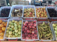 С 12:30 до 14:00 в отеле обед. Разнообразие еды ещё больше, чем на завтраке. По моему мнению здесь может каждый найти как привычную для себя еду (макароны, рис, картошку и т.д.), так и попробовать более острую турецкую пищу. В обед давали супы, разные салаты, очень большое разнообразие гарниров. На улице повара готовили разные виды рыб, шашлык, картошку фри. Так же огромный выбор фруктов (персики, абрикосы, черешня, клубника, бананы, дыня, арбуз, сливы, алыча, апельсины, грейпфруты, яблоки). Большой выбор сладостей (пирожные, пахлава, очень много желейных десертов, пудингов). Оливки, овощи (свежие, тушеные), зелень. А выпить можно как горячие напитки, так и всякие коктейли (как алкогольные, так и без), пиво, вина и т.д.