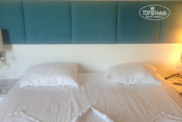 Комната досталась 1342, с видом на корты, горы и немного было видно море. Мебель в комнате новая- двуспальная кровать, небольшое кресло, шкаф. Из плюсов- наличие мини бара( пиво, кола, спрайт, мин. Вода), который при нажатии соответствующей кнопки обновлялся. Номер чистый. Убирали раза 4 за неделю.